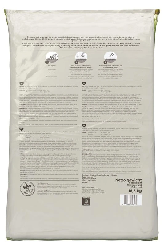 Pokon Gazonmest met Kalk 3-in-1 is zeer geschikt voor elk gazon, het hele jaar door. Deze hoogwaardige gazonmeststof op basis van organisch-minerale meststoffen bevat een uitgebalanceerde mix van essentiële voedingsstoffen. Uniek is de toegevoegde kalk in de korrel. In plaats van apart kalk en voeding te strooien ben je met deze gecombineerde korrel dus in 1 keer klaar. Met extra magnesium en ijzer waardoor je gazon bovendien een mooie volle groene kleur grijgt. Door het hoge kaliumgehalte wordt je gazon sterker, heb je minder last van mos en krijgt het gras meer weerstand tegen vorst in de winter.